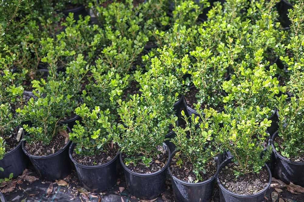 English Buxus - Sempervirens 200 pots from $9.50 each, small dark green and glossy leaves - naturally compact dense growth perfect for hedging.