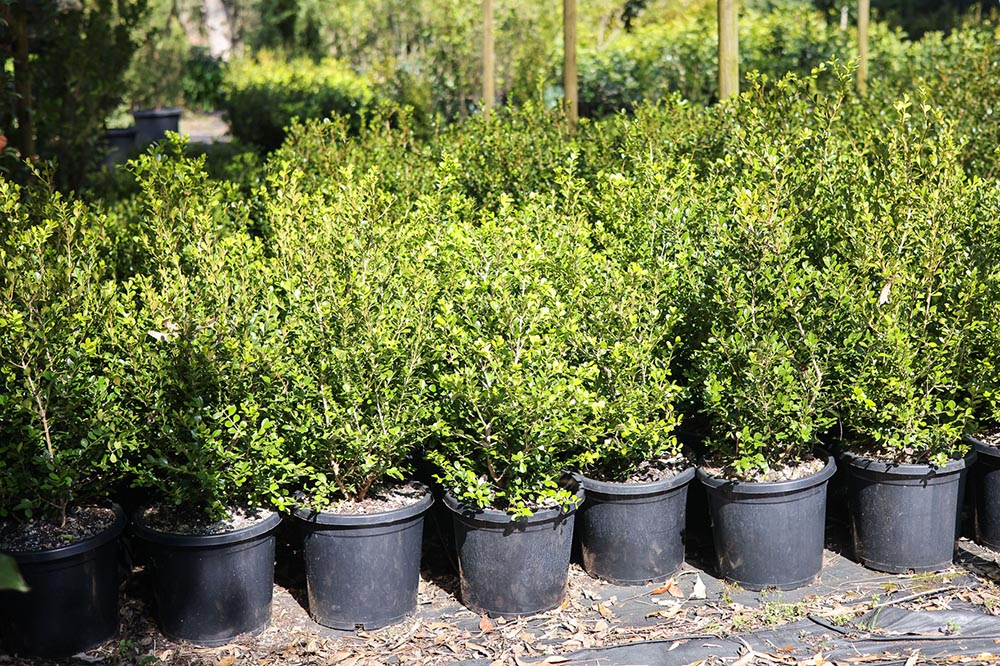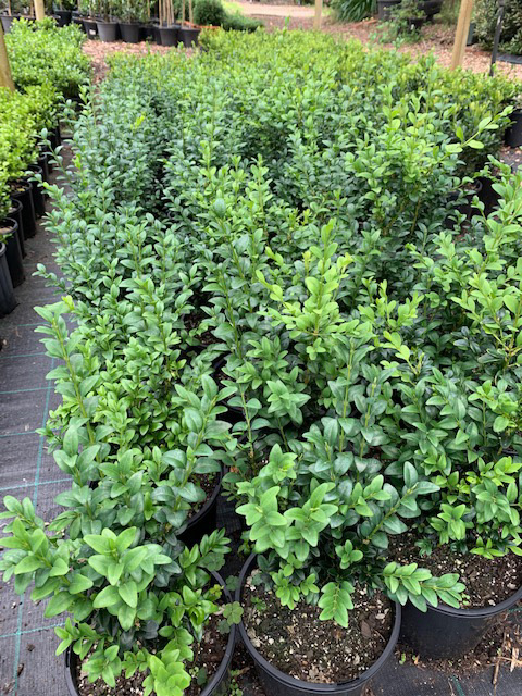 English Buxus - Sempervirens 200 pots from $9.50 each, small dark green and glossy leaves - naturally compact dense growth perfect for hedging.