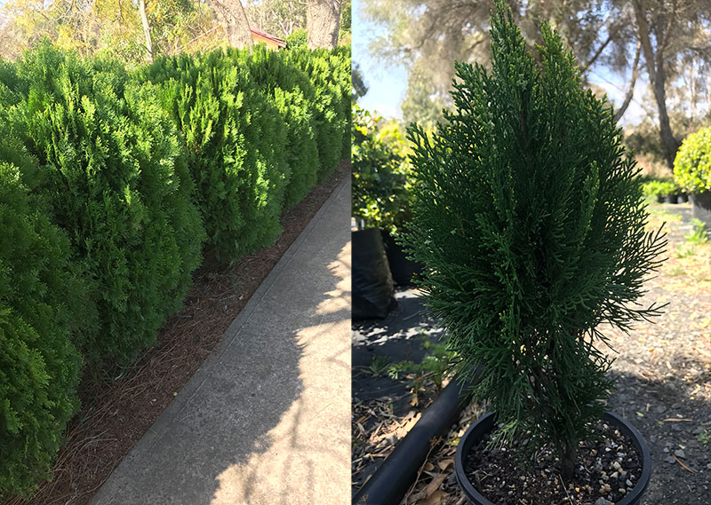 Thuja Orientalists Morgan Evergreen Dwarf Conifers, Mature advanced plants in stock from $50 each
